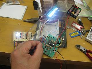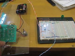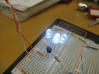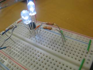 まずはブレッドボードで試してみる。元々のココナッツの基板に330Ωがつけてあるので、ベースに入れる前に680Ωを直列接続した。