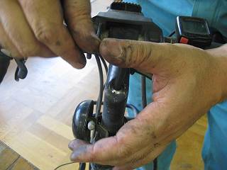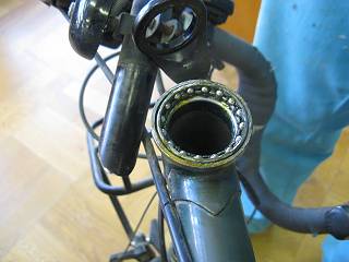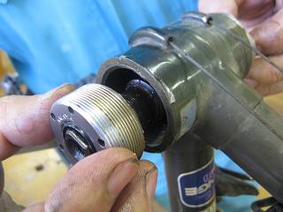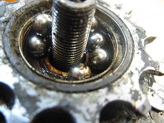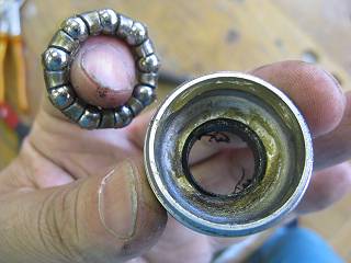 これは、玉押しを外した状態。まだグリスも残っていたが茶色く変色していた。