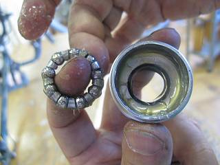 ベアリングも取り出してきれいに拭き、新しいグリスを詰める。