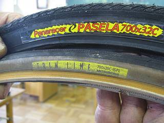 新しいタイヤは32Cなので、1.5倍以上太いものになった。転がり抵抗などが大きいだろうけれど、道路事情もあまりよくないので仕方がない。