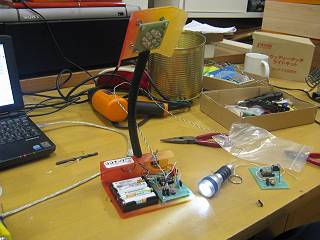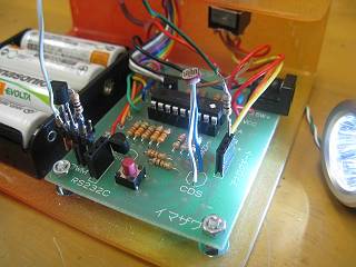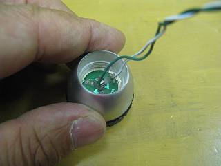 電池を抜いて、ドリルで穴を開けたところへコードを通して、外部から電源供給ができるように改造。