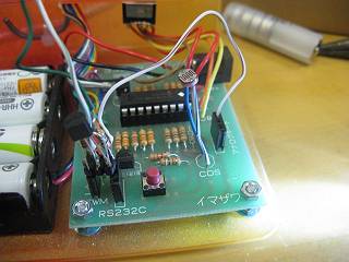 これが、ピンヘッダに載せた部分。実はこのままだと232Cポートをふさいでしまうので、もう一度作り直した。
