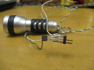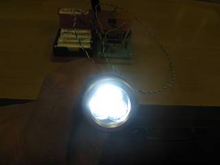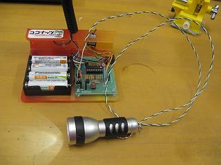 先日試してみたLEDへ流す電流をトランジスタで増幅する方法に従い、明るいLEDライトを接続してみた。