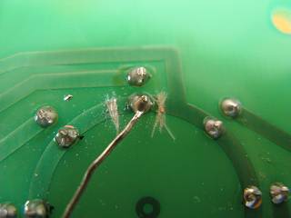 LED基板への配線も一本増えて、Vccから直接配線した。(右側の赤色)