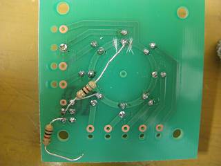 裏側の様子。前回と同じく、ベース側に1kΩ、コレクタ側に51Ωの抵抗を入れてみた。