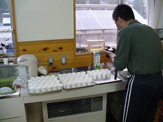 層状にしたゼリーを全員分作っている理科の先生。
