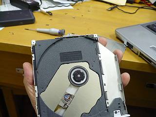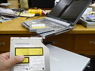 手持ちの薄型ドライブに交換しようと思ったが、IBM製でコネクタの位置が違っていた。