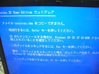 BOD(Blue screen Of Death)がでて、起動しないXP。まあ、かなり使い込んでいるものではある。