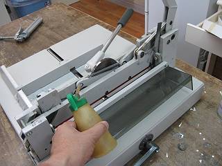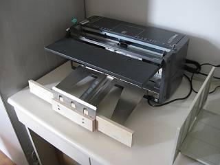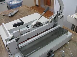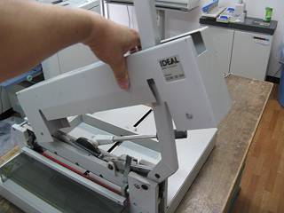 もう一つは裁断機。こちらは重ねてばっさり切るタイプだが,刃の調整が悪くていつも数枚が切れずに残っていた。