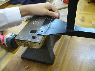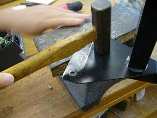 これは金とこの上でたたいて直すが、それよりも何よりも足の取り付け位置が最初はおかしかったので