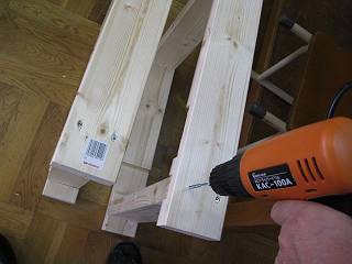 上の部分は前後に材を渡して構造体とし、固定用の穴の下にもう一本入れてボルトで留めた。