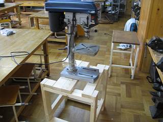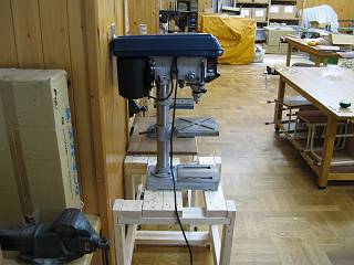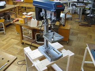 狭い技術室なので、今まで以前のボール盤があったところに今回のものを置いて、使うときは以前のもの(キャスターがついている)を横に動かして展開した状態で使おうと思う。