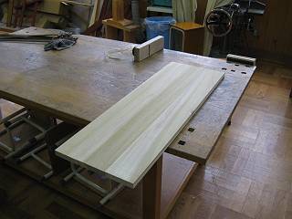 とりあえず、天板を貼り合わせで作る。4枚はぎの40cm、3枚はぎの30cmの2種類を作る。