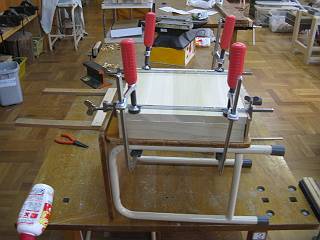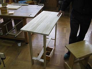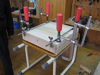 接着されるまでの時間を使って、老年の人が踏み台昇降運動に使うための台も作る。