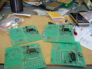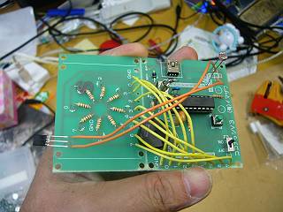 今回初めて製作した丸形配置の基板続き版。さすがにこちらはランドがつながっていないので配線をジャンパーで。