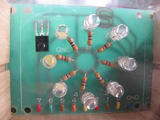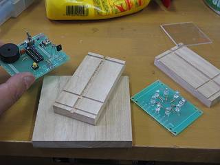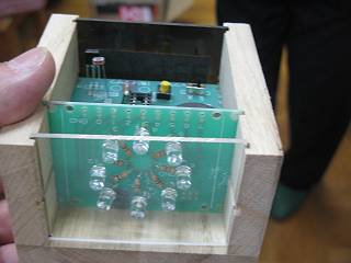 丸いタイプのLED基板は幅がそろっているので,板に溝を入れてはめ込む形にした。
