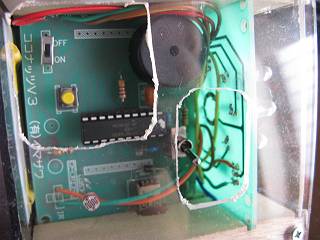 蓋はペット材でスイッチにアクセスできる穴を開け,ねじ止めした。