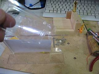 ねじの側には,普通のペットボトルから切り出した板を共締めして押さえつける形にした。
