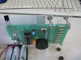 赤外線センサーとCDS(光センサー)は足を長めにハンダ付けし,上に折り曲げた。