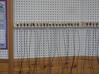 それをコンピュータ室の壁に木ねじで留めて完成。毎時間終了後にチェックできるようにした。