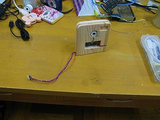 こんな形で使用テスト,レンズがあるので10m先の直径1mくらいの範囲を監視できる。