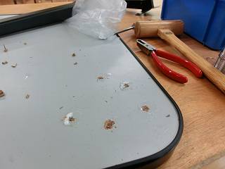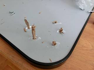 穴にボンドを入れて適当な木片を差し込んで留める。