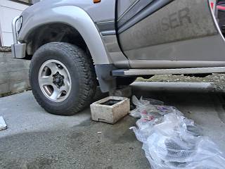 前日には妻のシエンタもオイル交換した。こちらはスロープにした板の上に載せて作業している。