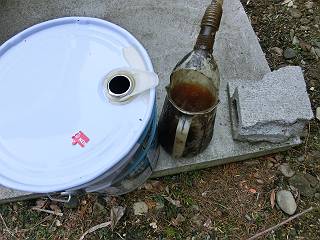 廃油はあいたペール缶に入れておいて、車検の時に引き取ってもらっている。