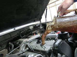 次の朝もまだぽちぽち落ちていたが、かなりしっかり廃油を抜き取ることができたと思う。