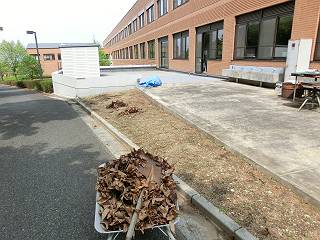時間に余裕ができたので、部屋の前の側溝から落ち葉を引き上げて掃除した。