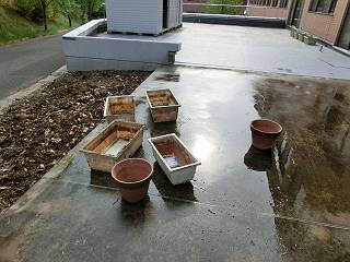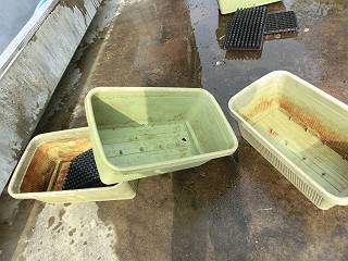 こっちのプランターは、結構しっかりしたもの。植木鉢と共に日にさらして殺菌する。