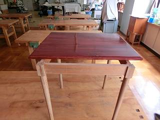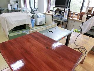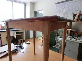 ここのところ少しずつ作ってきた応接用テーブル。ようやく完成した。