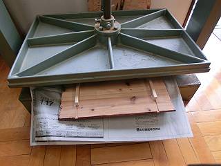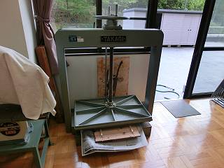 ボンドをつけて、木工プレスにかけて圧着する。これまた贅沢な設備。