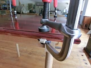 足と天板、少し天板が反ってしまったこともあって、吸い付き桟を入れることにした。