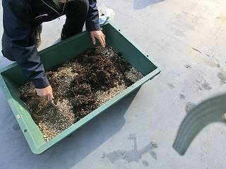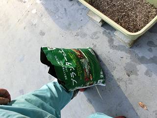 プランターの土には元肥が入っていると書いてあるが、化成肥料も一緒に混ぜてみた。