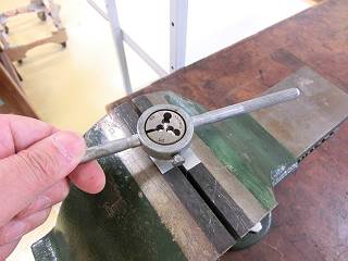 雄ねじは端がきちんとねじになるように、ダイスをひっくり返してしっかり切る。