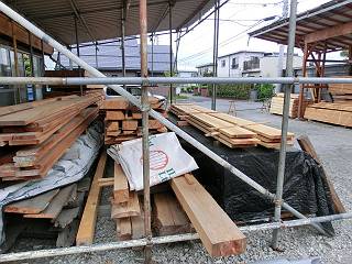午後、材木屋さんを紹介してもらったので、早速伺い県産材の杉を手に入れてきた。