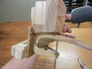 そうなると、車に置くところを作り直さなければならないということで,あまり材で製作した。