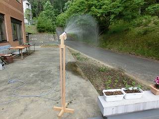 水を流すとこんな感じ。高さもあるので広範囲に撒くことができる。