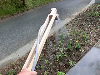 もう一つ、花壇の向こう側にもアームで届けることができるのは、当初考えなかったメリット。