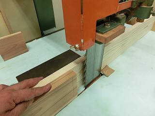ほぞの縦引きは帯のこで行うことにした。