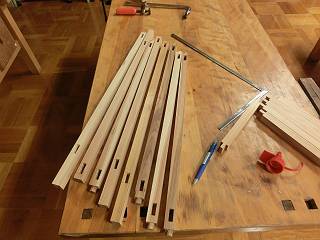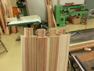 4つ分つながった状態でほぞを作り、その後で縦引きして4つに分けた。