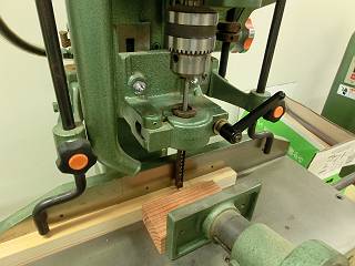 足はほぞ組で枠にするように角のみを使ってほぞ穴を開ける。