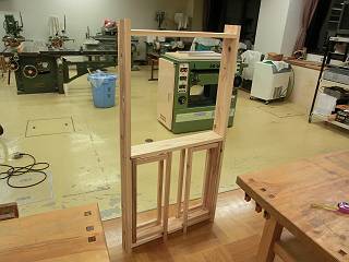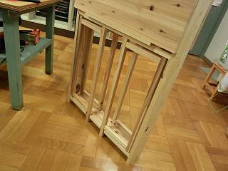 折りたたみ式の足を当初は丁番で取り付けようかと思ったが、木工レースも使いたいと思って、木だけで組むことにした。