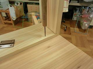 天板を取り付けるための下穴を開ける。まさにチョウチョのように両側に天板をつける。