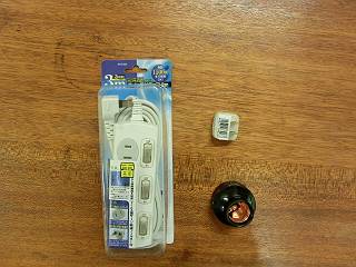 まずは、照明を取り付ける。レセプタクルとスイッチ付きのテーブルタップにコードをつないで這わせる。