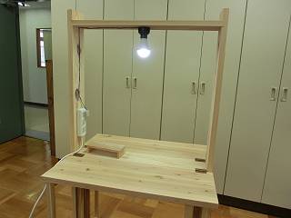 講座で作成する「バタフライワークテーブル」のサンプルに,実使用状態へ近づけて興味を誘うために少し飾ってみた。