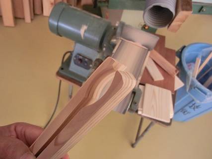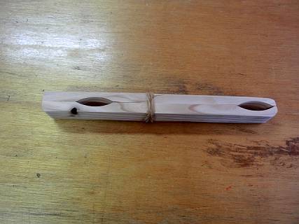 2本の板材をベルトサンダーで削って大きな洗濯ばさみのような設計にした。
