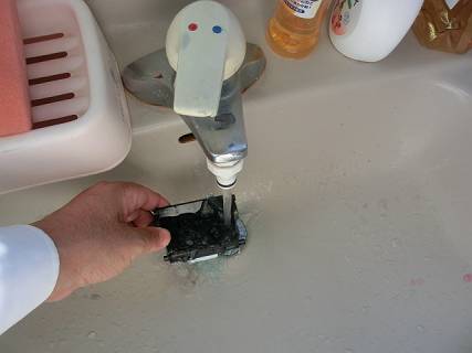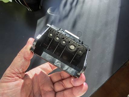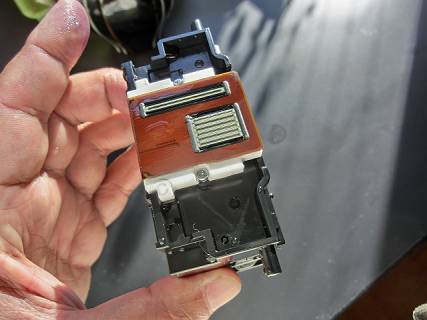 洗った後のプリントヘッド。そのほかのものはプラスチックパネルを細かく切ってプラゴミへ、その他は燃えないゴミに出した。
