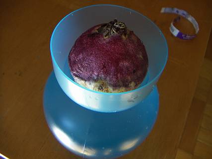 球根とポット、それぞれ90円と148円。球根はかなり大きめ。